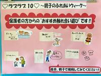毎月10日から16日までの7日間、浅羽東こども園では、”ラブラブ10”親子ふれあいウィークです