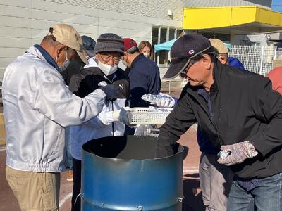 焼いも機の作成にあたり、ドラム缶を提供いただいた地域の方、