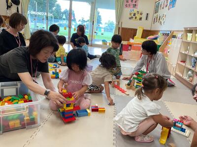 園児は少し恥ずかしそうな様子もありましたが、一緒に過ごす中で、自分から手をつないだり「これやろう」と誘ったりする姿が増えていきました。