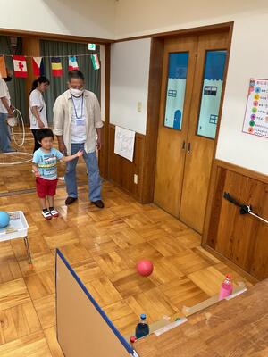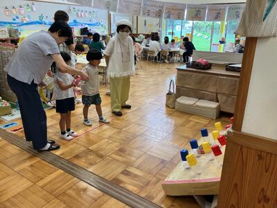 学年に応じて、折り紙や画用紙などを使った制作遊びをしたり、ボウリングや輪投げなどのミニゲームや目と目を合わせ、ふれあい遊びをしたりと楽しい時間を過ごしました。