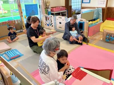 子どもたちは、朝の支度を済ませると「こっちに来て!」 「これで遊ぼうよ」と大好きなおじいちゃん、おばあちゃんの手を引き、嬉しそうにしていました。